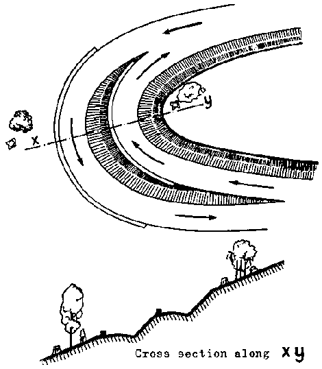 4. In a valley alignment, on the other hand, it is better to keep as low as possible, but above the flood plain; in a wide flat valley, instead of crossing numerous water courses near their confluences and where they are widest, it is better to economize with culverts or small bridges. If, however, the road has to go through a narrow valley with steep sides, fewer deep depressions should be crossed and the cuttings will be less deep.
