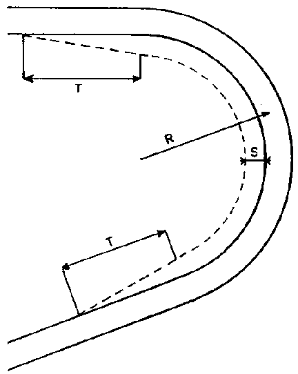 By repeating this operation until the other straight alignment C'A'B' is reached, a curve is described which is an arc of a circle of the required radius.4