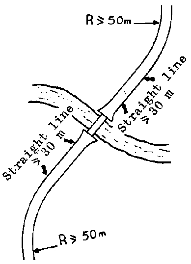 Daily experience shows that carriageways deteriorate very quickly on curves, which indicates that they should be laid out with the largest possible radius.