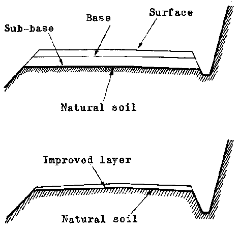 6. A deep cutting has two disadvantages: in the first place, the surface at the bottom is shut in, less sun reaches it and it is slower to dry; secondly, when the excavation is in progress strata of earth rich in clay may be found and this is exceedingly difficult to stabilize. The remedy lies in extending the alignment somewhat thus reducing the depth of the cutting.