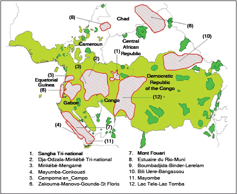 Central Africa’s conservation approach is based on land-use planning in 12 priority landscapes, involving establishment of core protected areas surrounded by multiple-use zones.