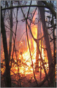 Près de 1,5 million d’hectares sont exploités chaque année pour la production de bois d’œuvre (Asner et al., 2005), souvent à l’aide de pratiques impropres, qui augmentent la dégradation forestière et la perte consécutive de biodiversité. Près du tiers de la forêt amazonienne a été dégradée par l’application de ces pratiques non durables. En outre, l’effet cumulatif de la déforestation, de la dégradation et des mauvaises techniques de récolte et de l’agriculture sur brûlis soumet des millions d’hectares de forêts à la merci d’incendies. Au cours des années où sévissait El Niño, les forêts étaient encore plus vulnérables au feu, car les longues périodes de sécheresse dessèchent les forêts et favorisent l’accumulation de combustibles (feuilles sèches) sur le sol (Nepstad et al., 2004).