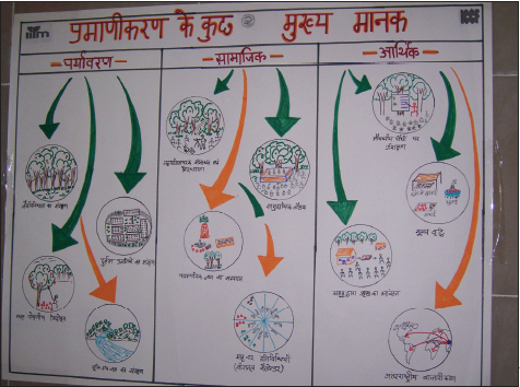 La norma fue elaborada en diversas fases. Primeramente, los encargados del diseño de las políticas, ingenieros forestales, instituciones académicas, ONG, comerciantes y representantes de la industria examinaron, en una serie de reuniones y consultas, diferentes marcos de certificación internacionales, evaluaron su aplicabilidad e hicieron propuestas sobre cómo adaptarlos. En segundo lugar, el proyecto de norma modificado se sometió a prueba en el campo a través de un proceso participativo en el que intervinieron recolectores, técnicos forestales, comerciantes locales, investigadores y ONG. En tercer lugar, el marco fue perfeccionado en talleres regionales. En la actualidad, se está llevando a la práctica en el campo en diferentes partes de la India, comprendidos los cuatro estados del proyecto.