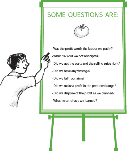 At the end of a market gardening project, the evaluation should pick up the projections in the Business Plan. Learners write up the evaluation report and include it in the Project File.