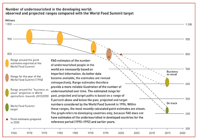 FIRST SOME GOOD NEWS. FAO’s latest estimates show that a number of countries have reduced hunger steadily since the World Food Summit (WFS) baseline period of 1990–1992. In 19 countries, the number of chronically hungry people declined by over 80 million between 1990–1992 and 1999–2001.
