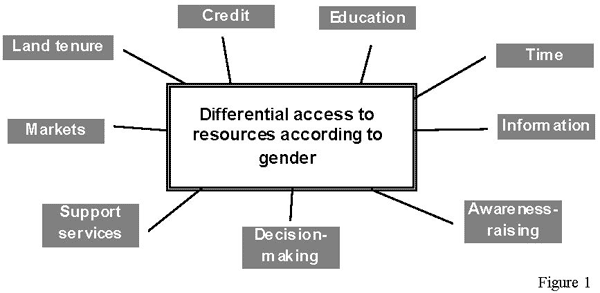 Removing gender-related barriers for greater access to resources Access to, and control of resources, are particularly pressing to the issue of dryland management, and should be addressed through a gender perspective to examine how and why men and women have different rights and benefits in the following areas, as seen in figure 1. |