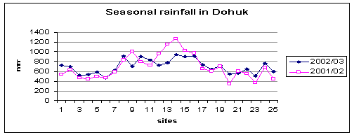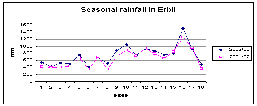 Figure 1. Seasonal precipitation for 77 sites in Dohuk, Erbil and Suleimaniya (2002 and 2003)