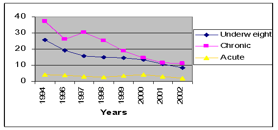 In the current food and nutrition situation, adequate supplies exist at national level, but complicated interactions at household level result in high child malnutrition and mortality and the prevalence of obesity among adults, with high levels of micronutrient deficiencies. A more comprehensive monitoring system and the ability to provide information for programme management and early warning for the central planners as well as for peripheral managers are urgently needed.