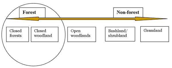 (bush lands, shrub lands, open woodlands, and grass lands) where non-forest