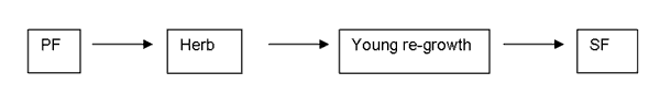 The figure below is intended to help understand better the formation of secondary forest that can then lead to a better understanding of the typology for this resource. The reader can navigate from right to left of the figure and understand the gradient from a forest situation to a non-forest one.