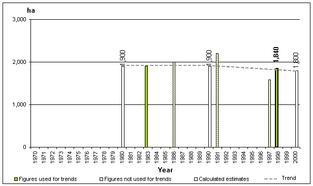 The estimated for 1980, 1990 and 2000 are based on the trend analysis but have been rounded to the nearest 1000 ha indicating the level of accuracy of one or more of the estimates used for the trend analysis.