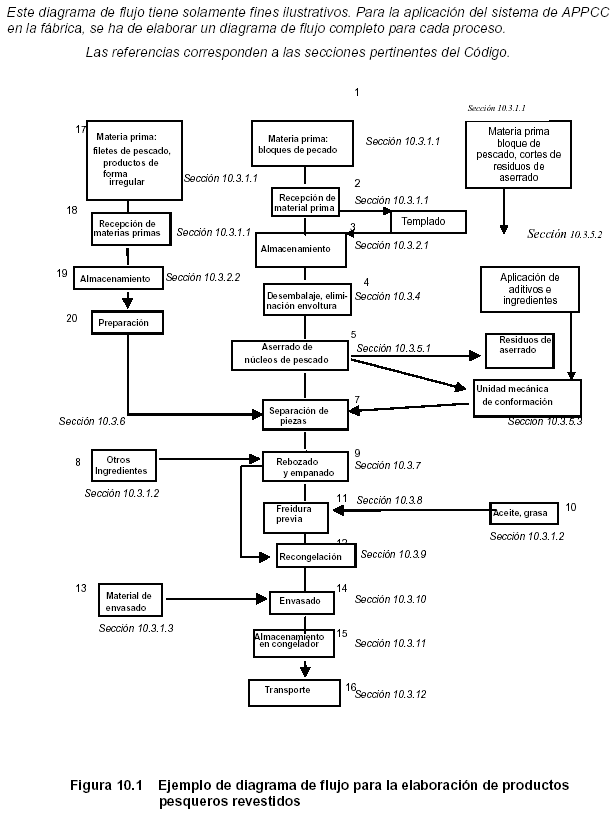 Con miras a reconocer los controles en las distintas fases de elaboración, en esta sección se ofrecen ejemplos de posibles peligros y defectos y se describen directrices tecnológicas que pueden utilizarse para establecer medidas de control y medidas correctivas. Para cada fase concreta, sólo se enumeran los peligros y defectos que podrían introducirse y controlarse en ella. Hay que tener presente que, al preparar un plan de APPCC y/o de puntos de corrección de defectos (PCD), es esencial consultar la Sección 5, en la que se ofrece orientación para la aplicación de los principios de APPCC y de análisis de PCD. Sin embargo, dentro del ámbito de aplicación de este Código de Prácticas, no es posible dar detalles de los límites críticos, la vigilancia, el mantenimiento de registros y la verificación para cada una de las fases, ya que son específicos de los peligros y defectos concretos.