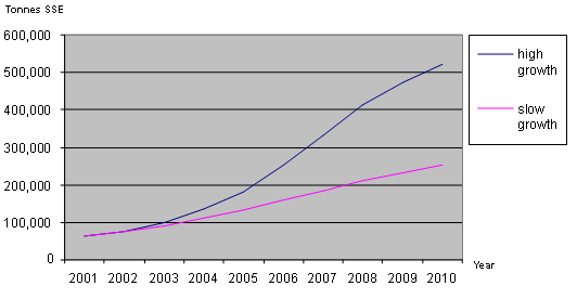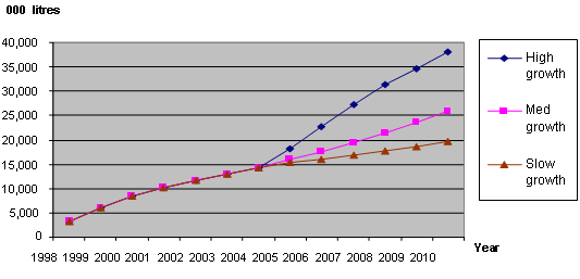 Figure 2. Projected consumption of organic citrus juices: 2 scenarios