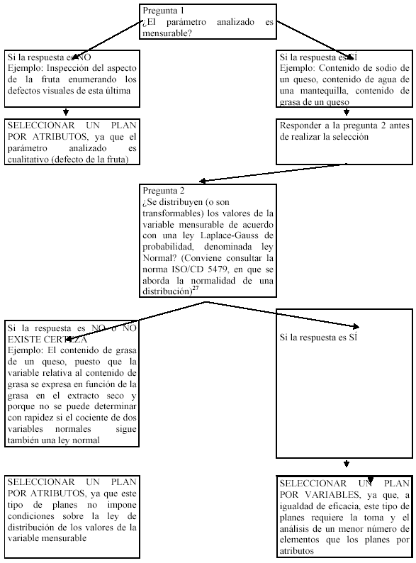 28 Cuando la inspección de dos especificaciones (p. ej., el contenido de grasa y el contenido de sodio de un queso dietético) requiere la aplicación de un plan por atributos (para el contenido de grasa) y por variables (para el contenido de sodio), se recomienda, por simples motivos de comodidad de la inspección, recurrir a un plan por atributos para las dos especificaciones.