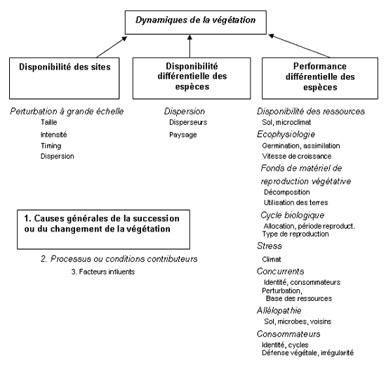 Figure 3: Ce schéma représente la hiérarchie à trois niveaux de Picket, un outil conceptuel pour comprendre les facteurs et processus impliqués dans le changement de la végétation