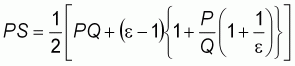 For an inelastic linear supply function, as that implied by the available cotton supply elasticity estimates, producers' surplus is determined by the area between the horizontal axis, the supply curve and the price line (Martin and Alston, 1997; Elbasha, 1997). In this case, the supply curve intercepts the horizontal axis resulting in a negative intercept term (a<0). Formally, producers' surplus (PS) is defined as: