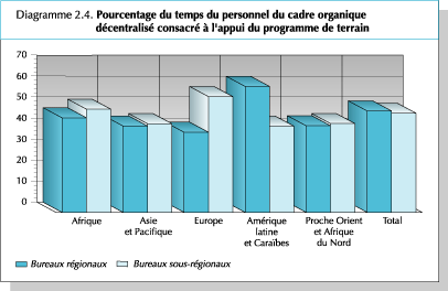 218. L’exposé qui suit porte essentiellement sur les ressources et les dépenses relatives au Fonds général et aux fonds connexes qui couvrent l’exécution du Programme de travail. Les activités liées au Programme de terrain sont examinées par programme dans la présente section et dans certaines parties du Résumé de l’exécution du Programme, notamment les Grands Programmes 3.2 (Appui à l’investissement) et 3.3 (Opérations de terrain).