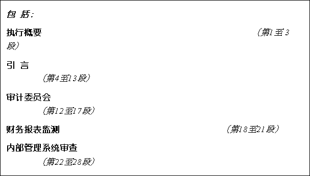 12. 执行干事对风险管理和本组织的内部监管机制负有最终的责任。一个高效率、富有挑战性的审计委员会是确保良好管理的关键因素,并将是执行干事履行这一责任的基本保证。有关审计委员会的作用的一种国际共识正在形成。在联合王国,财政报告理事会1将这样一个委员会的目的确定为: