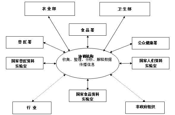 总的说来,食品安全方面代表政府的主要利益相关者是卫生部和农业部/食品部。在这些部之下,是负责食品安全计划的法律、技术和实际执行机构,每个机构往往有一个相关的专门资料实验室。通常通过这些实验室获取监视数据。这两种或者可能三种组织结构往往相互独立。为了全面了解国家食品安全状况,这两个部及其各自的机构和资料实验室应当密切配合。