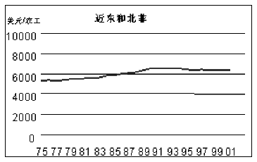 54. 在发展中国家地区,每个农业工人的资本存量差异非常大。拉丁美洲和加勒比海地区与近东和北非远高于撒哈拉以南非洲地区与亚洲和太平洋地区。而且,对较长期趋势的研究发现,自1975年以来每个农业工人资本存量相对显著增长的只有拉丁美洲和加勒比海地区,近东和北非以及亚洲和太平洋地区增长有限。最令人不安的是,撒哈拉以南非洲地区每个农业工人资本存量表现为缓慢但看来无法避免的下降。
