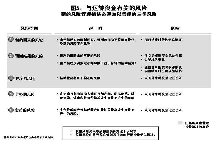 31. 捐助预测是粮食计划署用做担保手段,以确保运转资金的预付款,其并没有很多的捐助者约束问题,所以运转资金的提供和偿还一直比较顺利。但是,即使增加一个捐助约束(例如,以下所述的口袋标志),均将显著地减少这种资金的使用效率。