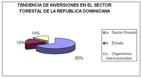 Inversión forestal: Con la Ley de Fomento Forestal los dueños de tierra (ganaderos, cañeros, el Estado dominicano) pueden convertirse en existosos productores forestales para aprovechar un mercado creciente que continuará en aumento a un ritmo de por lo menos 2.5% durante los próximos 60 años. Actualmente los terrenos con potencial de productividad forestal están siendo subutilizados en ganadería extensiva y en plantaciones degradadas de caña de azúcar; el 10% del territorio nacional, o sea, 475,000 hectáreas son fincas ganaderas con sistemas ineficientes de producción y con un potencial muy incierto para competir en un mercado de libre comercio.
