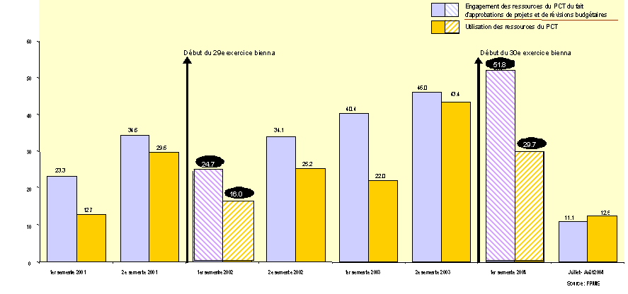 65. Le Comité s’est félicité du document et a exprimé sa satisfaction générale concernant les réalisations de l’exercice biennal 2002-03, telles que rapportées, notamment l’utilisation quasi-totale des ressources budgétisées.