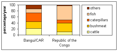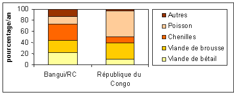 L’abondance saisonnière des insectes varie selon les différentes régions. La majorité des familles interrogées lors de la réalisation des études de cas consomme des chenilles. Celles-ci possèdent une forte valeur nutritionnelle et constituent une source importante de protéines dans les régimes alimentaires des populations d’Afrique centrale. Différents modes de consommation sont présentés selon les habitudes culturelles ainsi que les autres ressources en protéines disponibles (viande de brousse, etc.). Le commerce des insectes, même saisonnier, peut offrir des revenus complémentaires aux populations rurales mais aussi aux populations urbaines, particulièrement aux femmes. Le document présente les filières commerciales et les types de revenus possibles ainsi que certaines données chiffrées au sujet de l’exportation des chenilles.
