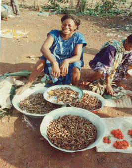 1.2.8. Recommendations1. Although awareness has already increased, more attention should be paid by the research community to further investigate the biological potential of edible forest insects in a multidisciplinary and practical way; to include conservation, forest management, agriculture, nutrition and processing aspects. More specifically: a. Most species are taxonomically identified, but knowledge on life cycles, host plants, abundance in different habitats, etc. is fragmentary. A detailed inventory of the natural resource base and linkages between caterpillars and host plants should be a priority field of research. In addition, local people should be involved in this research, so that they can contribute with their traditional knowledge. b. Another priority in the field of nutrition is the analysis of cancer risks through the consumption of smoked caterpillars (and subsequently the improvement of preservation techniques). c. Further research in caterpillar processing and storage is needed. Adding value might also open new opportunities for exportation and marketing. Experiences from countries such as Botswana and Zimbabwe in reference to the Imbrasia belina industry should be duplicated if possible. 2. Edible insects and their trade make a significant contribution to livelihoods of the poorest and most disadvantaged groups in the region. Research and development actions may include: a. A comprehensive socio-economic analysis at the household level to assess the contribution of insects to food security, including subsistence as well as income generation. The analysis should distinguish the different types of households involved in insect commercialization: producers, wholesalers and retailers. b. To improve household revenues through marketing insects, market chains and benefit-sharing must be analysed. As mainly women manage caterpillar processing and commercialization, producer-trade associations among women should be supported to improve their market share and profits. 3. Once more detailed and reliable information on the natural resource base, the markets and individual stakeholders is available, emphasis should go to investigating how best the production of insects can be incorporated in natural resource management and forest conservation plans: a. How to integrate the production and harvesting of caterpillars in forest, agroforest and land use management plans in general (e.g. to optimize yields and to ensure sustainable harvest levels and techniques with low risks to neighbouring farmed crops). The research of Holden (1991) and Chidumayo (1997) who documented positive impacts of caterpillar harvests on the reduction of bushfires is a very good example of potential ways to improve larvae production within an integrated land use system. b. Another critical field of research is the domestication of forest-based insect species and host plants, which should be considered in integrated land use management practices as it may support reforestation efforts. The focus is to identify suitable agroforestry systems and their management, appropriate selection of insect species and host plants, methods on how to reproduce vegetal material and conditions enabling increased yields of production (but with low risks for farmed crops). c. The development of such forest management systems includes analysis of tenure and access to forests, with their corresponding institutional frameworks and regulations regarding conflict management between different user groups in a forest concession; for example: the local people, caterpillar gatherers and timber producers. d. By means of education and extension programmes, forest users should be sensitized to understand the ecological processes and links between insect gathering and the forest ecosystem. An increased recognition of the negative impacts of deforestation and bushfires on caterpillar numbers and particularly the practice of tree-cutting for harvesting caterpillars should motivate people to adopt alternate techniques. |