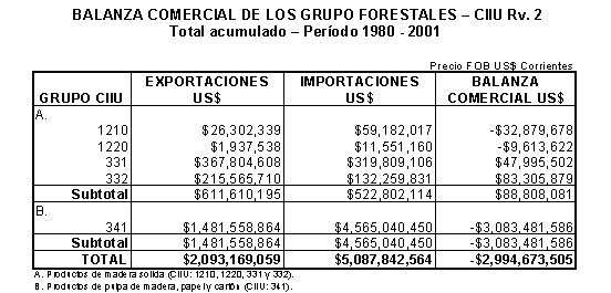 Según datos publicados por el Ministerio del Medio Ambiente17, hasta 1999 el área con plantaciones forestales comerciales era de 145.759 ha, total basado en registros de superficies iguales o mayores de 10 ha.
