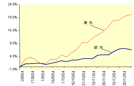 2004年7月31日以来的美元和欧元收益