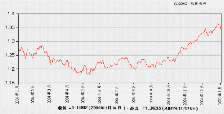2004年欧元/美元汇率变动情况