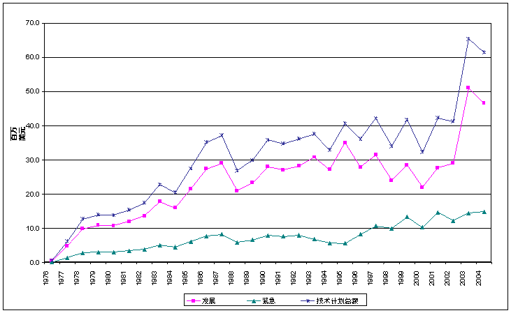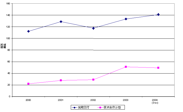 图2: 实地交工总额与技术合作计划交工量(2000-2004, 紧急情况除外)7