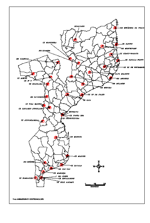 Distribution of the districts and the location of HIV/AIDS sentinel posts in 2002 (CNCS, 2003)