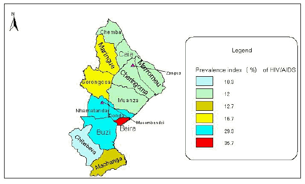 Table 4. Estimated HIV/AIDS prevalence in the districts of Sofala (compiled from CNCS, 2003)