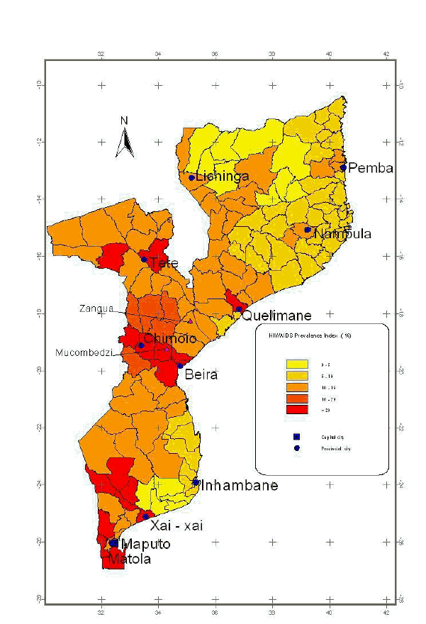 Map of HIV/AIDS prevalence index, Mozambique