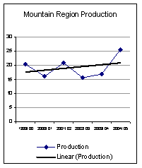 The graphs show that cereal production in Lesotho is on the decline nationally and in all regions except in the mountain region where there is a slight upward trend. The downward trend is steepest in the breadbasket central region consisting of the districts of Butha-Buthe, Leribe, Berea and Maseru, which on average contribute 57 percent of national cereal production. The southern region (Mafeteng, Mohale’s Hoek, Quthing, Qacha’s Nek) contributes 29 percent while the mountain region consisting of only two districts (Mokhotlong, Thaba-Tseka) contributes 14 percent. The declining production, particularly in the important central region, should be of great concern and needs to be fully investigated. Likely major factors at work include soil erosion which is endemic in Lesotho, recurrent weather disasters (droughts, frosts, hailstorms) and the impact of HIV/AIDS.