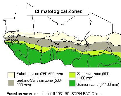 based on the average annual precipitation and agricultural features, i.e. Sahelian