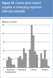 Global trade in coarse grains in 2005/06 is currently forecast at 104.5 million tonnes, down 2 million tonnes from the latest estimate for 2004/05. The decrease in exports from the previous season would be mainly accounted for by lower shipments of barley while some declines are also anticipated for maize and sorghum. The estimates for coarse grains exports in 2004/05 have been raised by nearly 5 million tonnes since the previous report as a result of much larger reported sales by the major exporters, including Argentina, Australia, the United States and several countries in Europe. Aggregate coarse grains imports by countries in Asia are forecast to remain nearly unchanged from the previous season with expected purchases by most countries remaining steady at the previous season’s level. However, maize and barley imports by the Islamic Republic of Iran are forecast to continue to increase, mainly driven by a fast growing feed demand, while good prospects for barley production in the Syrian Arab Republic could result in lower imports by that country. Total imports by countries in Africa are forecast to increase by almost 1 million tonnes from the previous season to just over 16 million tonnes in 2005/06. Barley and maize purchases by several countries in North Africa are expected to increase, mainly in response to less favourable production prospects. Total imports are expected to increase also in the sub-Saharan countries as a group. Lower imports by the Republic of South Africa, Kenya, and Sudan are likely to be more than offset by larger import demand in Zambia and Zimbabwe. This season’s coarse grains imports by most countries in Latin America and the Caribbean are likely to increase slightly. In Mexico, the region’s largest importer, this year’s maize output is currently forecast to remain similar to the previous season’s level, thus resulting in an increase in imports given its fast growing demand for feed. Brazil is expected to emerge as a net maize importer this season because of the reduced domestic production. However, in Europe, imports are likely to remain subdued mostly as a result of large supplies. In the EU, where this year’s production is forecast to drop, imports could still decline because of ample carryovers and large expected imports of feed wheat. Regarding exports, maize sales from Argentina and the Republic of South Africa are forecast to increase significantly as a result of a strong rebound in their production. Exports from the United States are also forecast to increase although prospects for any significant rise in exports have been hampered by Hurricane Katrina, which has greatly interrupted grain movement in the Mississippi River Gulf Ports. Maize exports from China are expected to remain below the previous season. However, in view of the recent rebound in transport costs and delays in the resumption of normal export activities in the United States, China’s maize could become more competitive, leading the way for larger exports to China’s nearby markets. Among other important players, a sharp fall in coarse grains production in Bulgaria and Romania could result in lower sales of barley and maize from those two countries. Barley exports from Ukraine are also seen to decline this season, mainly as a result of lower production. However, exports from the Russian Federation could approach the previous season’s level in spite of a small anticipated decline in production since stocks remain large and local supplies of feed grains exceed domestic demand.