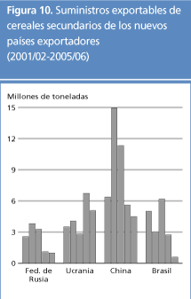 El comercio mundial de cereales secundarios en 2005/06 se pronostica actualmente en 104,5 millones de toneladas, 2 millones de toneladas menos que la estimación última hecha para 2004/05. La disminución de las exportaciones con respecto a la campaña anterior se debería principalmente a los menores envíos de cebada mientras que también se prevén algunas mermas para el maíz y el sorgo. Las estimaciones para las exportaciones de cereales secundarios en 2004/05 se han elevado en cerca de 5 millones de toneladas desde el informe anterior como consecuencia de las ventas mucho mayores registradas por los principales exportadores, como Argentina, Australia, los Estados Unidos y algunos países de Europa. Según los pronósticos, las importaciones totales de cereales secundarios de los países asiáticos se mantendrán casi sin modificaciones con respecto a la campaña anterior, ya que se prevé que las compras de la mayoría de los países se mantendrán constantes en el nivel de la campaña anterior. Sin embargo, se pronostica que las importaciones de maíz y cebada de la República Islámica del Irán continuarán aumentando, impulsadas principalmente por una demanda de piensos en rápido crecimiento, mientras unas buenas perspectivas para la producción de cebada en la República Árabe Siria podría redundar en una disminución de las importaciones de ese país. Se pronostica que las importaciones totales de los países de África aumentarán casi en 1 millón de toneladas con respecto a la campaña anterior a poco más de 16 millones de toneladas en 2005/06. Se prevé un aumento de las compras de cebada y maíz de algunos países de África del norte, en respuesta principalmente a unas perspectivas de producción menos favorables. Las importaciones totales deberían de aumentar también en los países subsaharianos como grupo. Es probable que la disminución de las importaciones de la República de Sudáfrica, Kenya y el Sudán se vea compensada por un aumento de la demanda de importaciones en Zambia y Zimbabwe. Con toda probabilidad las importaciones de cereales secundarios efectuadas en la presente campaña por la mayoría de los países de América Latina y el Caribe aumentarán marginalmente. En México, el mayor importador de la región, se pronostica que la producción de maíz de este año se mantendrá semejante al nivel de la temporada anterior, lo que se traducirá en un aumento de las importaciones dado el rápido crecimiento de la demanda de piensos. Según se prevé, Brasil surgirá en esta campaña como un importador neto de maíz a causa de la reducción de su producción interna. Sin embargo, en Europa es probable que las importaciones sigan en disminución debido principalmente a la abundancia de suministros. En la UE, donde se pronostica una merma de la producción de este año, las importaciones podrían todavía seguir disminuyendo a causa de la abundancia de existencias remanentes y las cuantiosas importaciones previstas de trigo forrajero. Con respecto a las exportaciones, se pronostica que las ventas de maíz de la Argentina y la República de Sudáfrica aumentarán apreciablemente como consecuencia de una fuerte recuperación de su producción. También se pronostica un aumento de las exportaciones de los Estados Unidos aunque las perspectivas para un aumento significativo se han visto perjudicadas por el huracán Katrina, que ha interrumpido en gran parte el movimiento de cereales en los puertos del Golfo del río Misisipí. Las exportaciones de maíz de China deberían ser inferiores a las de la campaña anterior. Sin embargo, en vista de la reciente recuperación de los costos del transporte y los retrasos registrados en la reanudación de las actividades normales de exportación en los Estados Unidos, el maíz de China podría llegar a ser más competitivo, dando lugar a un aumento de las exportaciones a los mercados vecinos de China. Entre los otros actores importantes, el fuerte descenso de la producción de cereales secundarios en Bulgaria y Rumania podría dar lugar a una disminución de las ventas de cebada y maíz de esos dos países. También se prevé una disminución de las exportaciones de cebada de Ucrania durante la presente campaña, debido principalmente a la merma de la producción. Sin embargo, las exportaciones de la Federación de Rusia podrían acercarse al nivel de la campaña anterior a pesar de una pequeña disminución prevista en la producción ya que cuenta con reservas abundantes y los suministros locales de cereales forrajeros superan la demanda interna.