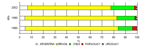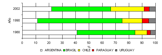 Fuentes: FAO, Proyecto RLA 133 EC, 2000; Informes nacionales, SAGPyA, AFOA, sitios de los países (1996, 2001); STCP 2001 y 2002
