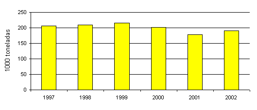 Entre 1997 el consumo ha aumentado hasta alcanzar 215 mil toneladas en 1999. A partir de este período el consumo disminuyó. Sin embargo, a partir de 2002, la situación se invirtió volviendo nuevamente a crecer.
