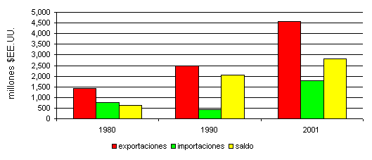 En 2001 los valores de productos forestales exportados en la subregión del Cono Sur han sobrepasado los valores de las importaciones, lo cual dio como resultado una balanza comercial positiva (Figura 42). Sin embargo, considerando los datos presentados, el saldo solamente es positivo gracias al Brasil y a Chile, que fueron los países de la subregión que han señalado superávit en el año.