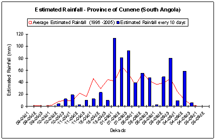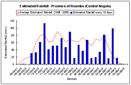 The October rains started normally this year in the northern part of Huila. There was some heavy rain in November, and December was unusually dry. In the centre of the province, rainfall in October and November was poor, though this was less marked in the east. The south normally gets poor rainfall at this time of year, but this year it was worse than usual. However, this is mainly an agro-pastoral area with sorghum and millet as the staples.