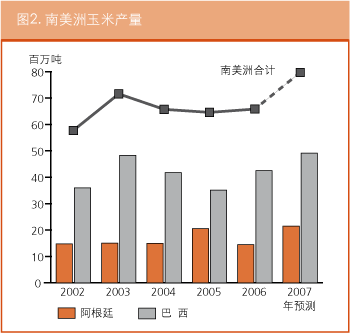2007年主季粗粮作物的收获工作正在进行。初步估算显示总产为创纪录的约8900万吨,比去年的好收成和过去五年平均水平高20%。这是由于播种面积和单产普遍双双提高。由于乙醇生产的旺盛需求,该次区域玉米总面积扩大了约5%。在阿根廷,虽然3月第二周的大量降雨造成收获作业出现一定延误,但预计玉米单产达创纪录的每公顷7.7吨。预计巴西的平均单产也达创纪录的每公顷3.7吨,主产州巴拉那州最高甚至达每公顷9吨以上。美国对乙醇需求造成的国际价格的上涨刺激了巴西农民增加第二季冬玉米作物(“ Safrinha”)的播种面积,预计将创近380万公顷的最高纪录。2007年主季稻米作物的收获工作正在进行,初步预测稻米总产为2200万吨的平均水平。