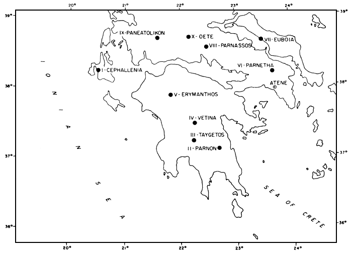 | VIII | Parnassos | 38°35' | 22°30' | 1050–1250 | 1200 | 10.4 |