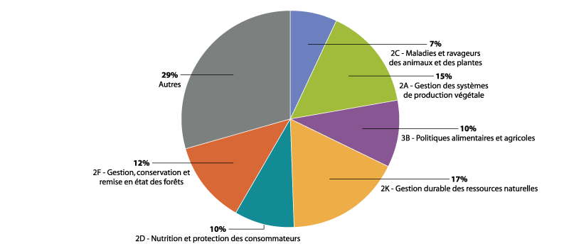 274. L’aide au titre du PCT s’est concentrée sur le Programme 2K: gestion durable des ressources naturelles, avec 15 pour cent des ressources régionales du PCT; suivi par le Programme 2A: gestion des systèmes de production végétale, avec 13 pour cent; et par le Programme 3B: politiques alimentaires et agricoles, avec 11 pour cent.