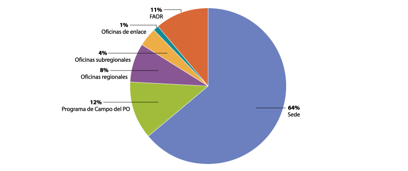 22. El gasto total (Programa Ordinario y extrapresupuestario) por capítulo presupuestario, según el Programa de Labores y Presupuesto revisado 2006-07, se resume en la Figura 2. El Capítulo 2: Sistemas alimentarios y agrícolas sosteniblesy el Capítulo 3: Intercambio de conocimientos, políticas y promoción supusieron el 74 % del gasto en 2006-07, correspondiendo otro 15 % al Capítulo 4: Descentralización, cooperación en el ámbito de las Naciones Unidas y ejecución de programas.