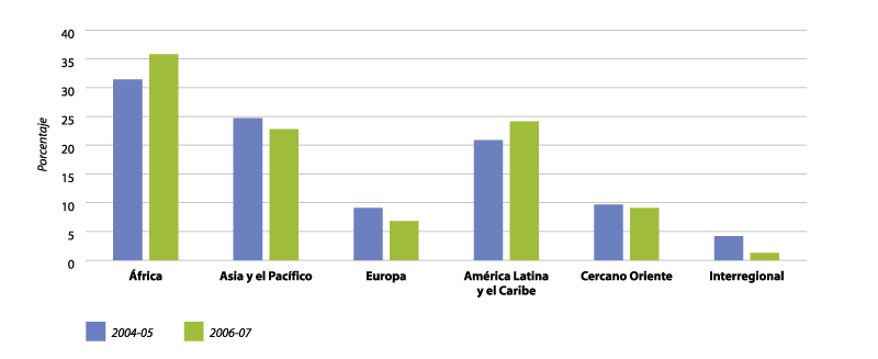 Asistencia de emergencia y apoyo a la rehabilitación199. El valor de los proyectos de emergencia nacionales y regionales aprobados en 2006-07 representó el 12 % del total