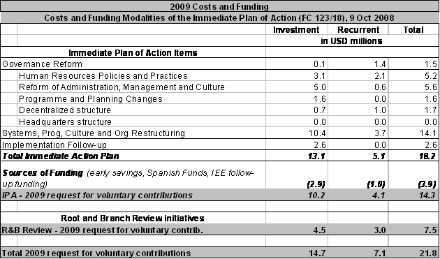 2) The estimated costs and savings for each action are provided in the action matrices in of the Immediate Plan of Action (IPA). The assumptions for development of the costings and savings can be found in the Annex to Finance Committee document FC 123/18 - Cost and Funding Modalities of the Immediate Plan of Action.
